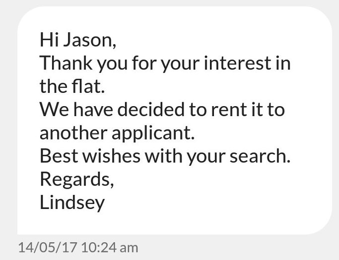 다음날 탈락 메시지를 집주인에게 받았다.