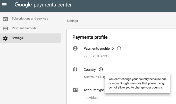 구글 플레이스토어 계정의 국가설정을 변경하려고 하니