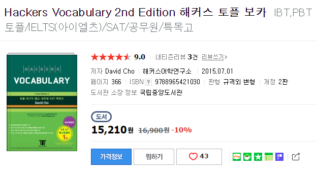 최신 경향을 완벽 반영한 2015 최신개정판 <Hackers Vocabulary 2nd Edition> 은 PBT/IBT 토플, IELTS(아이엘츠), SAT, 공무원, 특목고까지 모두 대비 가능한 토플 단어 추천 책입니다.